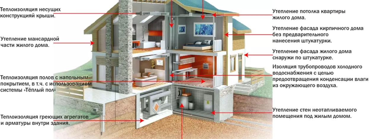 - Устранение мостиков холода и промерзания стен