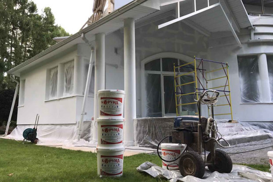 При нанесении на стены действует как утеплитель, сохраняя тепло в помещении, как гидроизолятор, не допуская проникновения влаги в щели и трещины. И как фасадная краска, покрывая стены ровным полимерным слоем.